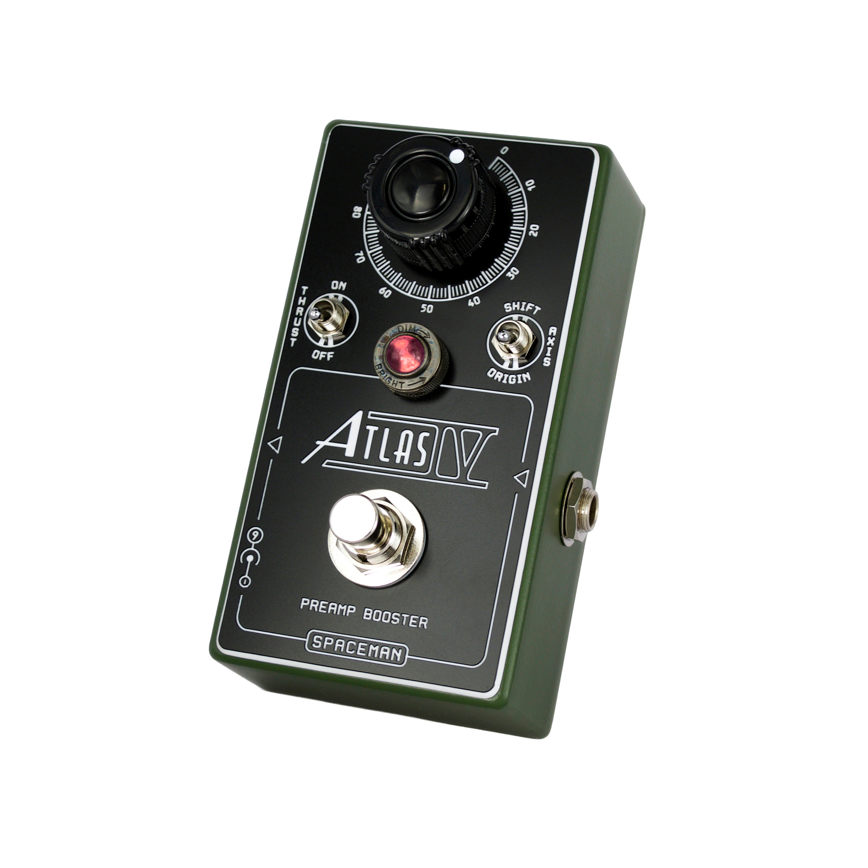 Fully soldered and wired by hand in Portland, Oregon, the Atlas IV features true-bypass switching via soft-click footswitch. On top of the cast-aluminum enclosure sits a durable, engraved vinyl faceplate and jewel indicator light. This pedal is built to last a lifetime, both on Earth or in the vacuum of space and carries a Limited Lifetime Warranty to prove it.